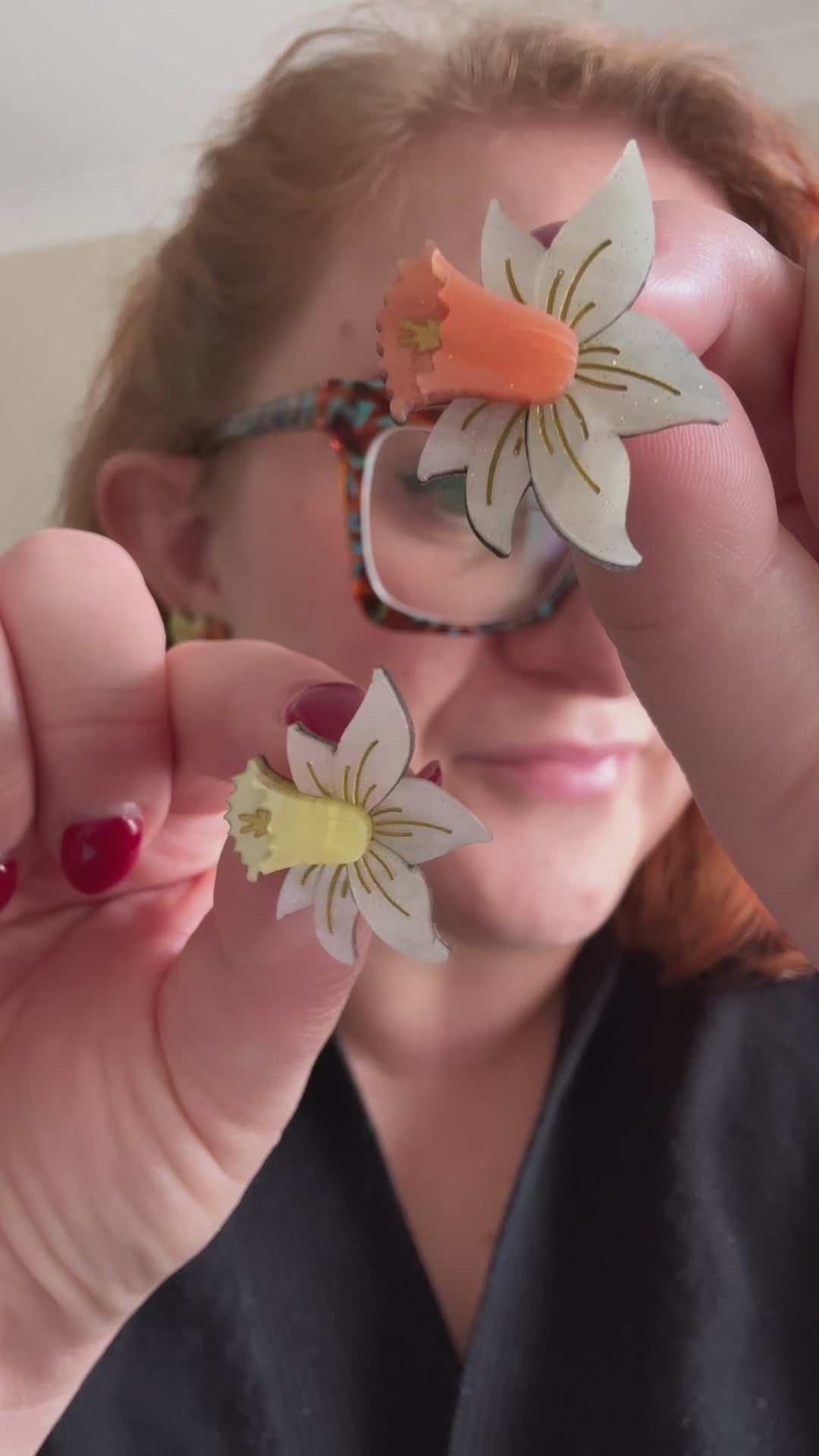 Add a pop of sunshine with the Daffodil Studs! These playful, flower-inspired acrylic earrings are handmade in Australia, offering a lightweight and cheerful accessory that brightens any outfit. Perfect for those who love a subtle yet fun floral touch every day.
