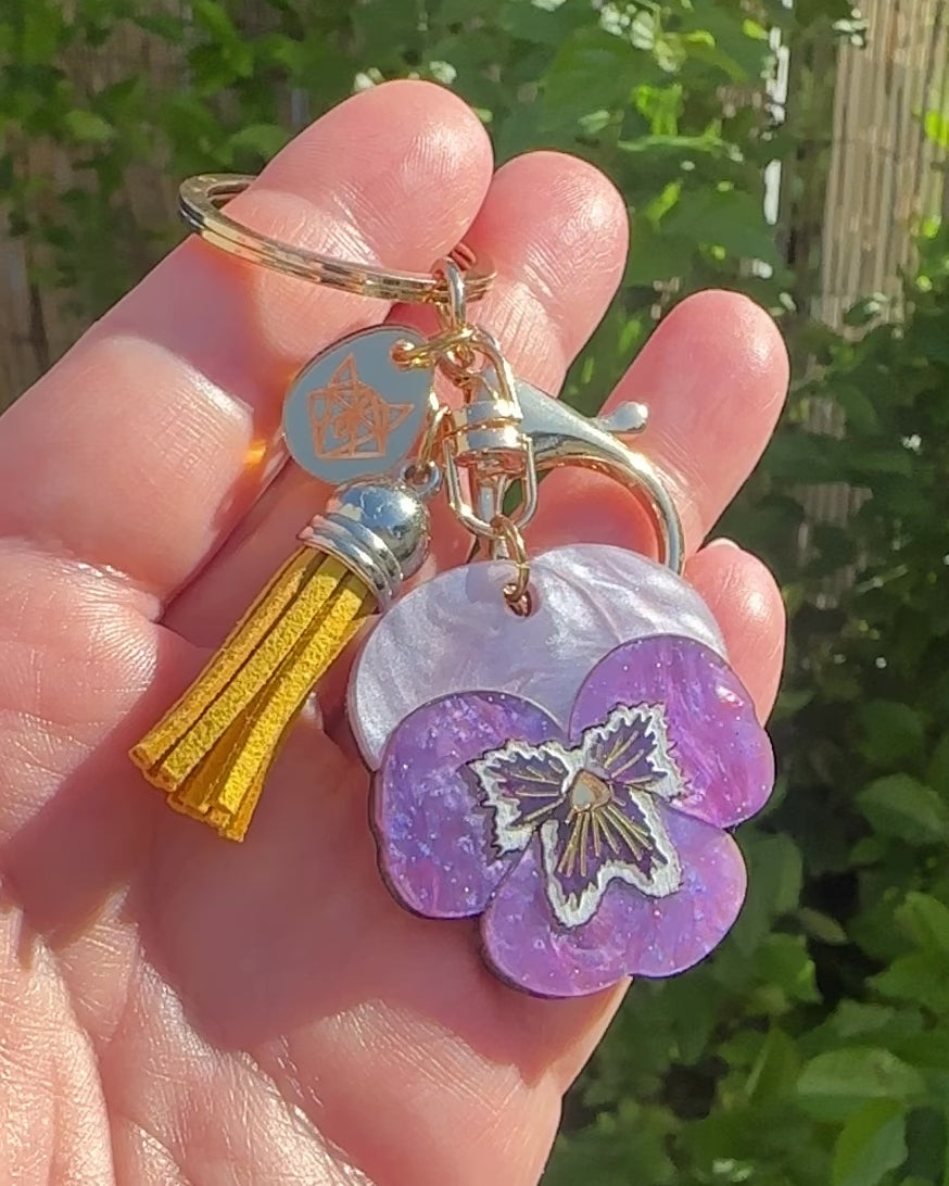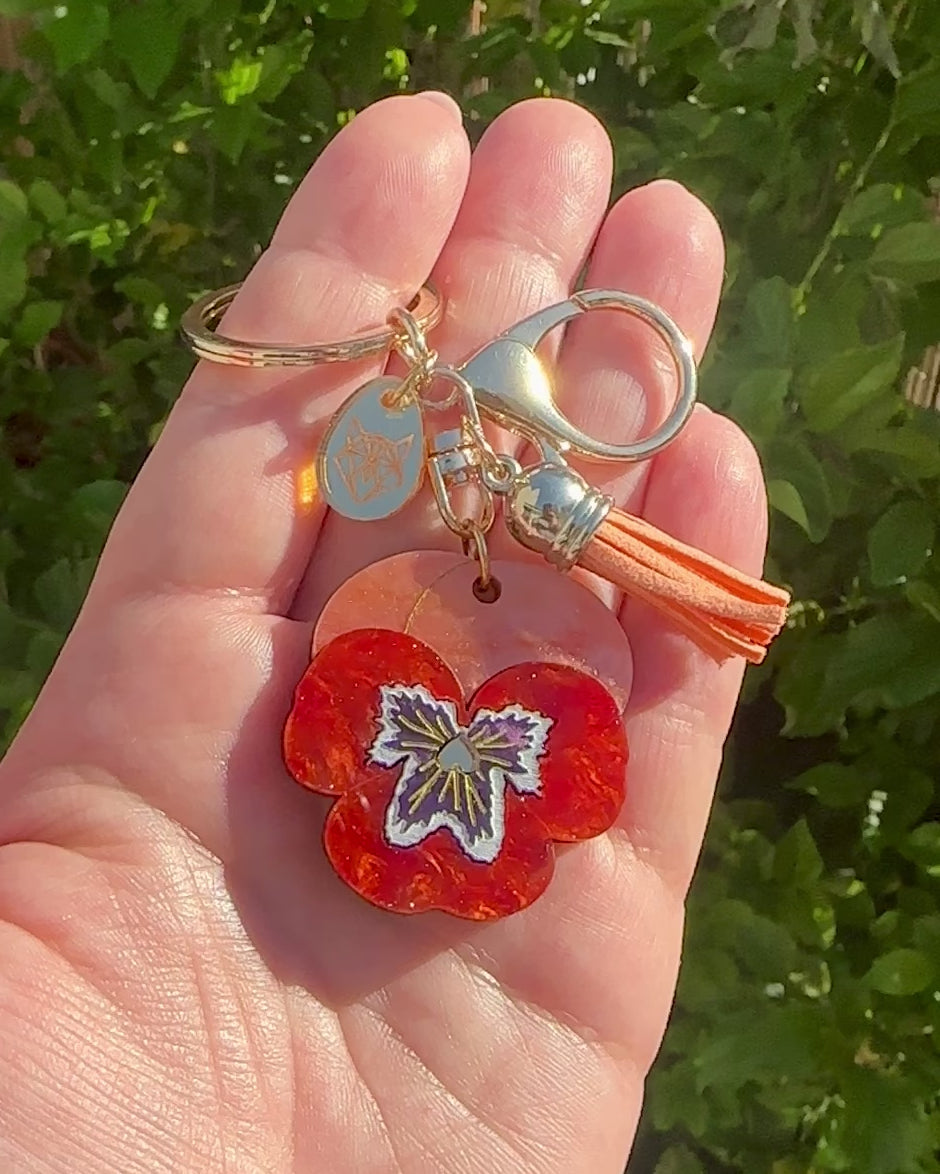 Add a splash of floral fun to your keys with this playful Pansy Keyring. Handmade in Australia from vibrant acrylic, it’s a charming way to brighten your day and keep your keys easy to find. Perfect for flower lovers who enjoy a touch of whimsy wherever they go!